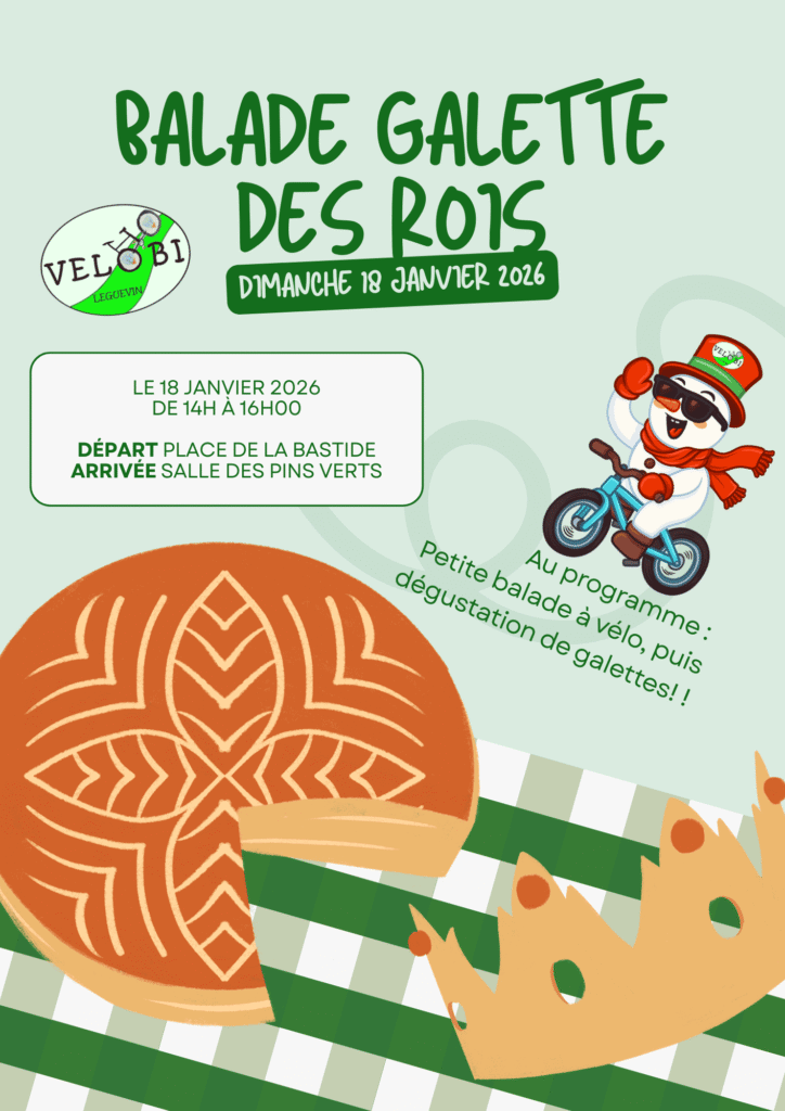 Il fait froid! 🥶🥶🥶⛄⛄⛄Du coup on s’est dit qu’il fallait faire une petite balade pour se réchauffer! 🚲 Et comme on aura brûlé beaucoup trop de calories quoi de mieux que de se réconforter autour d’une galette des rois 😉👑👑👑 On pourrait aussi faire le point sur l’état d’avancement de la seconde portion du REV. Rendez-vous dimanche 16 Janvier 2026 à 14h00 place de la Bastide.